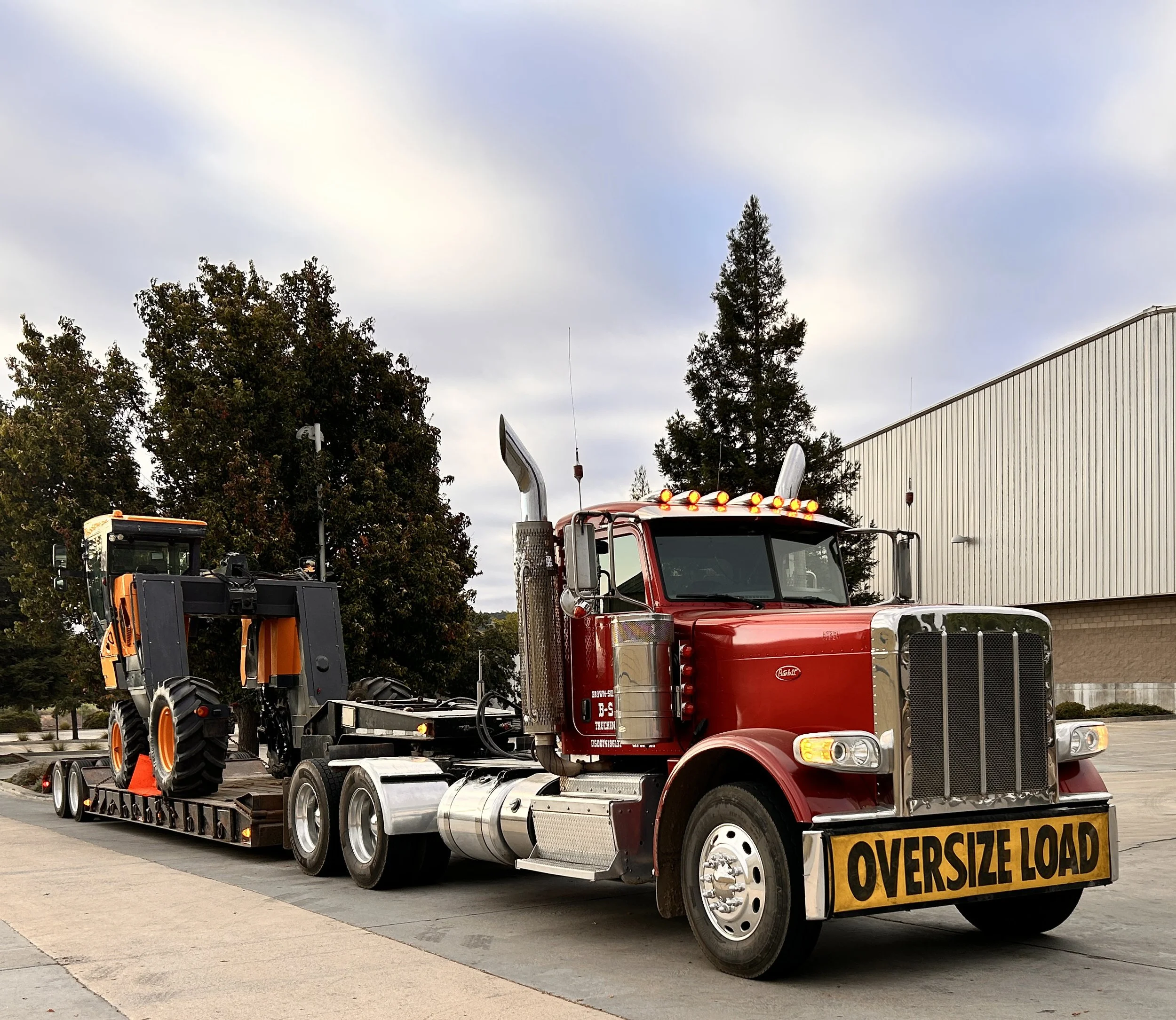 Equipped with a removable neck trailer, we are capable of transporting a diverse array of equipment. Should you require a trailer that aligns with your specific requirements, please do not hesitate to contact us for further discussion. Our services encompass a comprehensive range of industries, including grape harvesters, agriculture machinery, construction equipment, industrial machinery, antique equipment, and oversized loads.